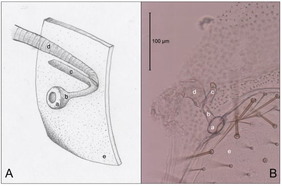 - Snodgrass, R.E. Principles of Insect Morphology; Cornell University Press: Ithaca, NY, USA, 1993; p. 667. [Google Scholar]