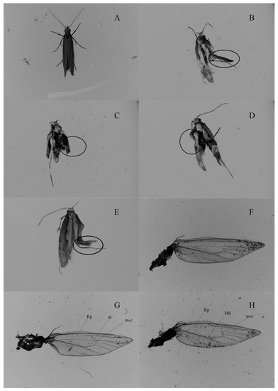 - Shimmi, O.; Matsuda, S.; Hatakeyama, M. Insights into the molecular mechanisms underlying diversified wing venation among insects. Proc. R. Soc. B Biol. Sci. 2014, 281, 20140264. [Google Scholar] [CrossRef]