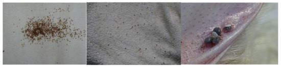 - Encinas, A.; Oleaga, A.; Pérez Sánchez, R. Garrapatas duras. In Parasitología Veterinaria; McGraw Hill Interamericana: Madrid, Spain, 1999; pp. 420–429. ISBN 84-486-0236-6. [Google Scholar]