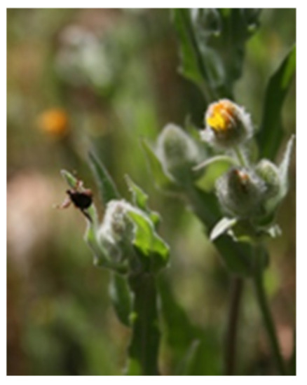 H. lusitanicum adults are able to climb up on vegetation where they wait for a host with their two front legs extended to expose the Haller organ to detect host stimuli (Figure 4). However, for the most part they remain hidden on the ground or amongst vegetation cover and, when the host is detected, they use their sight and run quickly towards it (personal observations). Their eyesight also enables them to select the best hiding places [89] (Video S3). We concur with Strong [90] who reported that tick distribution in the field is not random. Indeed, there are a number of “hot tick spots” with the best environmental conditions (temperature, humidity, vapor pressure, season, wind, and plant height) where H. lusitanicum adults can easily be found (Video S4) [36,90]. Other species such as Dermacentor variabilis situate themselves along trails [88] but H. lusitanicum is mostly found in areas where the host remains for extended periods of time to rest or in the vicinity of feeders (personal observations). It is also possible to find adults of H. marginatum by dragging [62,93], but we do not believe that this is an appropriate sampling method, as reported by the European Food Safety Authority [94].