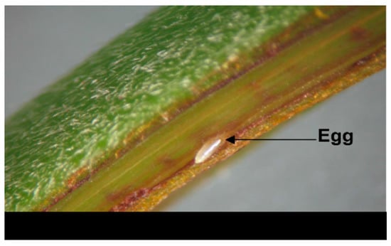 As stated above, eggs of E. onukii are laid within the stalk and leaf petiole epidermis of the newly-growing tea plant shoots. We asked the question as to whether hand plucking, the most common harvest method of the shoot harvesting, could represent an effective method of egg removal. To answer this question, we took into account the facts that instead of the whole shoot, certain leaf order intervals of the shoot should be selected for the harvesting. In addition, generally, the more attached leaves are selected, the lower the value of the shoot, because of the reduced levels of aroma and flavor precursors [17].