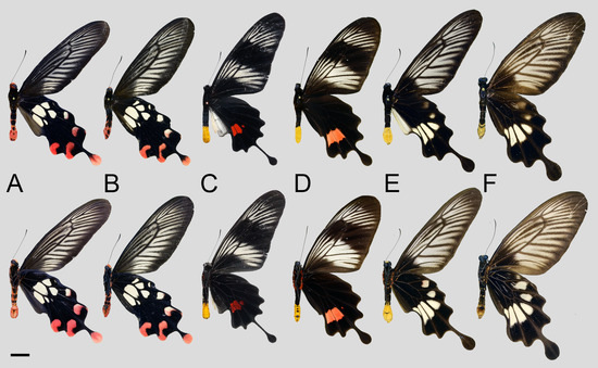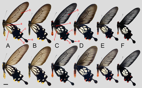 - Tsukada, E.; Nishiyama, Y. Butterflies of the South East Asian Islands. Part I. Papilionidae; Plapac Co., Ltd.: Tokyo, Japan, 1980. [Google Scholar]