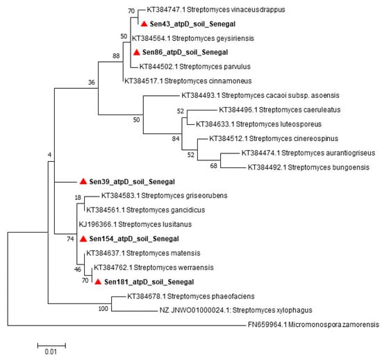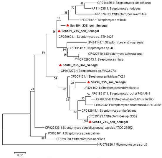 - Chaves, J.V.; Ojeda, C.P.O.; da Silva, I.R.; de Lima Procopio, R.E. Identification and Phylogeny of Streptomyces Based on Gene Sequences. Res. J. Microbiol. 2017, 13, 13–20. [Google Scholar]