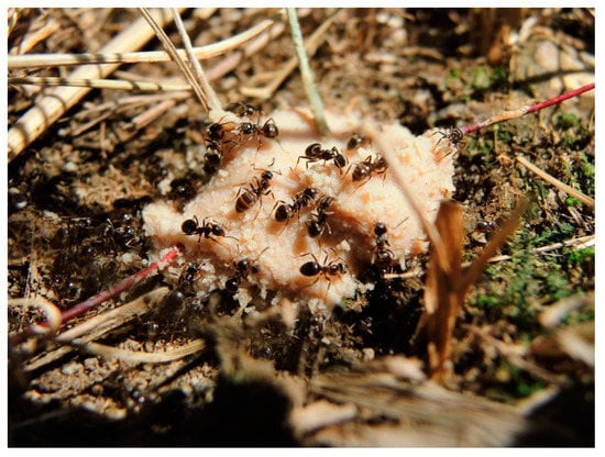 - Deslippe, R.J.; Savolainen, R. Role of food-supply in structuring a population of Formica ants. J. Anim. Ecol. 1994, 63, 756–764. [Google Scholar] [CrossRef]