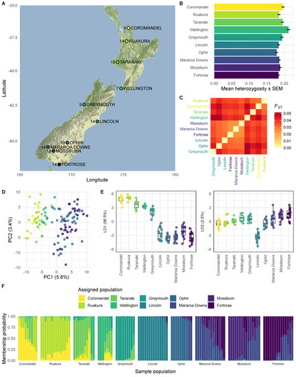 3.2. Genetic Variation Is Associated with Geography in NZ Populations of Argentine Stem Weevil