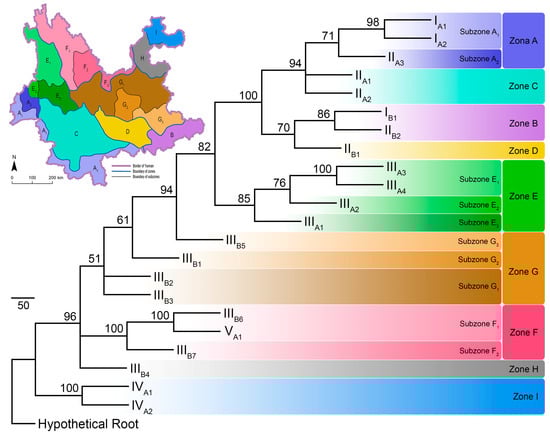 Although the optimal geographic division of an area for the PAE analysis is establishing grid cells, this method is obviously restrained by the extremely high geographical complexity of Yunnan and limited resolution of species distribution data from literature records and museum specimens. To address this restraint, the present research adopted an existing zonation system proposed by Yang [84], with slight modification, to reflect different natural ecosystems of Yunnan.