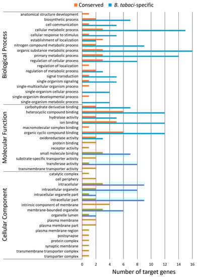 3.3. Predicted Targets for Novel and Conserved B. tabaci miRNAs