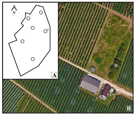 - Lee, J.C.; Dreves, A.J.; Cave, A.M.; Kawai, S.; Isaacs, R.; Miller, J.C.; Van Timmeren, S.; Bruck, D.J. Infestation of wild and ornamental non-crop fruits by Drosophila suzukii (Diptera: Drosophilidae). Ann. Entomol. Soc. Am. 2015, 108, 117–129. [Google Scholar] [CrossRef]