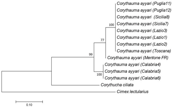 - Folmer, O.; Black, M.; Hoeh, W.; Lutz, R.; Vrijenhoek, R. DNA primers for amplification of mitochondrial cytochrome c oxidase subunit I from diverse metazoan invertebrates. Mol. Mar. Biol. Biotechnol. 1994, 3, 294–299. [Google Scholar] [PubMed]