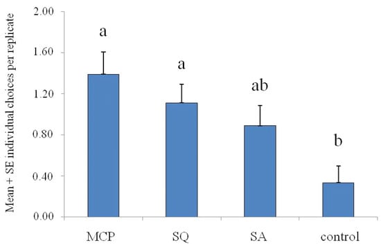 3.3.1. Four-Choice Pitfall Olfactometer Bioassays