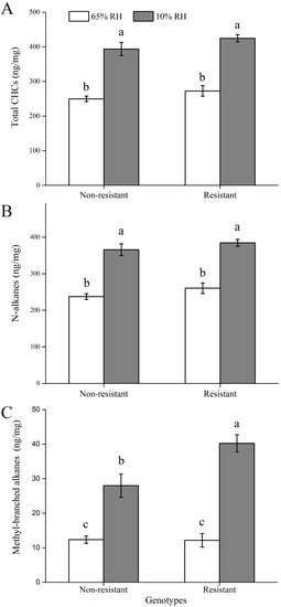 - Chen, N.; Fan, Y.L.; Bai, Y.; Li, X.D.; Liu, T.X. Cytochrome p450 gene, CYP4G51, modulates hydrocarbon production in the pea aphid, Acyrthosiphon pisum. Insect Biochem. Mol. Biol. 2016, 76, 84–94. [Google Scholar] [CrossRef]