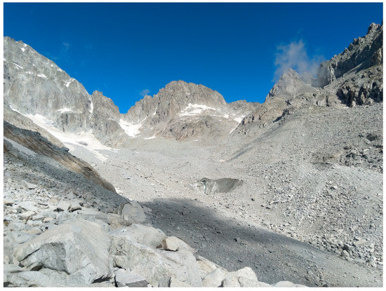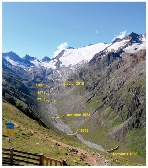 - Pelfini, M.; Diolaiuti, G.A.; Leonelli, G.; Bozzoni, M.; Bressan, N.; Brioschi, D.; Riccardi, A. The influence of glacier surface processes on the short-term evolution of supraglacial tree vegetation: A case study of the Miage Glacier, Italian Alps. Holocene 2012, 22, 847–856. [Google Scholar] [CrossRef]