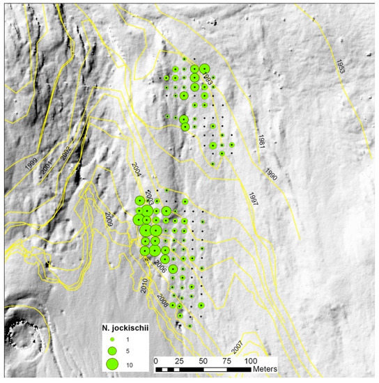Response to local environmental conditions can be demonstrated on the small scale in pitfall grids. In Rotmoos valley, the occurrence patterns of various carabid species remained stable over years. A non-continuous occurrence of Nebria jockischii illustrates the point: local conditions are decisive, not only site age (Figure 6, unpublished).
