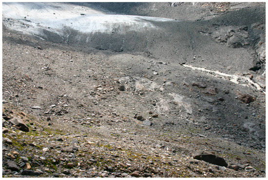 Microclimate and structural diversity are two closely connected parameters. For example, during sunny days, open ground, including stones, can be considerably heated due to the lack of shadow-producing vegetation. Heat can be slowly released afterwards, improving hunting conditions for predators and even some nocturnal species. Shallow ponds may also be considerably heated by sun. On windy days, stones create shelters, both horizontally and vertically. Figure 5 illustrates how wind-dispersed diaspores of pioneer mosses can aggregate and thrive alongside a large stone [30]. The effect of local microclimate for early succession has been well documented in the Austrian Rotmoos foreland [9,31]. Even small temperature changes by climate warming may profoundly speed up the initial colonization [32].