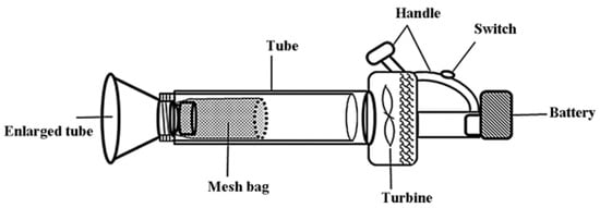 In order to assess the effects of the treatments on leafhoppers, parasitoids and spiders, every day at 7:00 a.m., the sticky cards were collected and replaced. The replaced cards were taken back to the laboratory, the numbers of female and male tea leafhopper adults on the cards were counted, as well as the trapped parasitoids and spiders. All the insects and spiders on the cards were collected and stored in 75% alcohol and identified them under a stereomicroscope. The parasitoids and spiders were identified to the family level. The collected parasitoids (Hymenoptera) were identified based on the differences in antenna, mouth parts, mesonotum, prododeum, wing (vein, pterostigma, etc.), which referred to the book wrote by Rrichards (1985) []. The collected spiders (Araneae), were identified mainly according to the morphological characters, the arrangement of ocellus, mouth parts, sternum, appendages, spinnerets and abdomen []. The control plots served to understand the normal population dynamics. In this case, a suction machine (electromotor, 16,000 rpm, with a 12-cm-diameter inlet, Figure 2) with the trapping was used to collect and record the numbers of female and male tea leafhopper adults, parasitoids and spiders. Each suction collection was also done at 7:00 a.m., lasted for 2 min, and covered a surface area of 9 m2 (surface area expected for daily activities of leafhoppers in tea plantations). The experiment ran from 13 May 2015 to 20 September 2015.