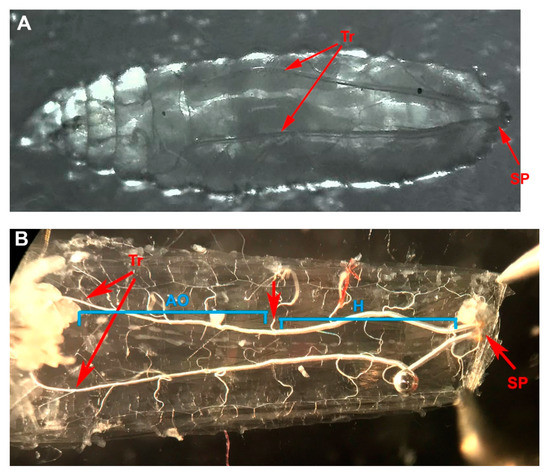 - Cooper, A.S.; Rymond, K.E.; Ward, M.A.; Bocook, E.L.; Cooper, R.L. Drosophila melanogaster for Physiological Studies. J. Vis. Exp. 2009, 33, e1596. [Google Scholar] [CrossRef]