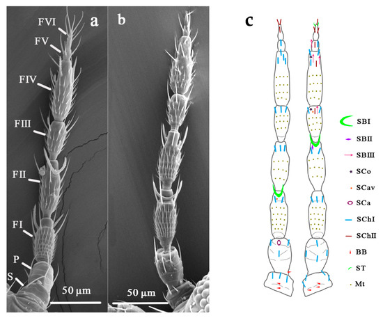 - Hallberg, E.; Hansson, B.S. Arthropod sensilla: Morphology and phylogenetic considerations. Microsc Res. Tech. 1999, 47, 428–439. [Google Scholar] [CrossRef]