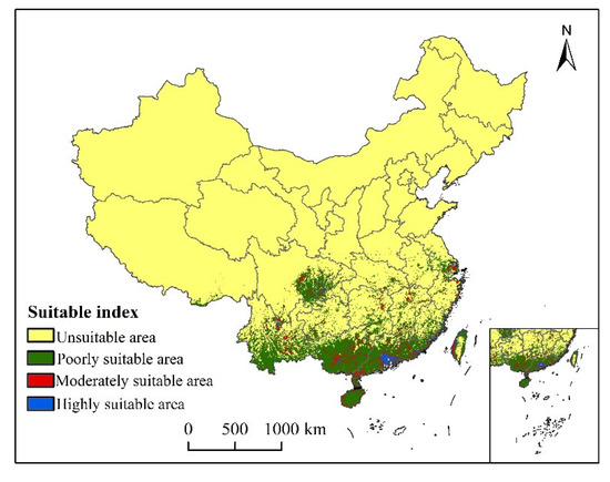 3.3. Suitable Areas under Current Conditions