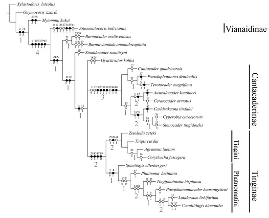 The monophyly of the clade Gyaclavator kohlsi + Tinginae + Cantacaderinae is supported by one synapomorphy: spines on head straight (3:0), this result is in agreement with Wappler et al. (2015) [7] based on the morphological evidence.