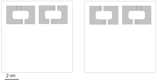 On 31 March 2021, I collected 49 acorns containing ant colonies (6 queenless, 42 containing one queen, and one with two queens; workers ranging in number from 4–202, median: 71, mean: 75.6; and all the colonies containing brood at different stages of development). For the experiment, I chose 34 colonies containing one queen (workers: 18–202, median: 97, mean: 95.0) and transferred to square Petri dishes (10.2 cm × 10.2 cm × 1.9 cm) with a thin plaster base. Each dish contained two artificial nests comprising a cavity between a piece of cardboard and half of a microscope slide (i.e., 38 mm × 26 mm), which were kept apart by pieces of Plexiglas (3 mm-thick) and coated with a piece of a red translucent filter from above (Figure 3). The volume of the cavity was ca. 0.78 cm3 and the entrance size was 2.5 mm × 3 mm × 6.5 mm (width × height × length). Two types of nest sites were used: with one entrance and with two entrances, where each Petri dish contained a nest site with one entrance and a nest site with two entrances. The distance between the entrances to the two nest sites was about 7 cm (see Figure 4). The position, i.e., left or right, of the nest cavities with one or two entrances in the Petri dishes was systematically varied to eliminate any chance of a directional bias (e.g., [34]).