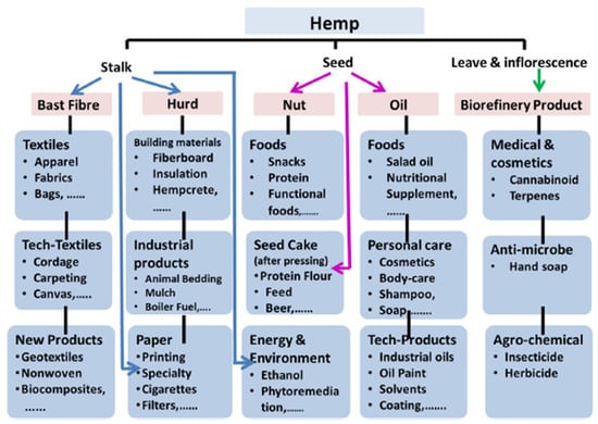 Flowchart of multi-purpose hemp utilization. Graphic is from Salentijn et al. [4].