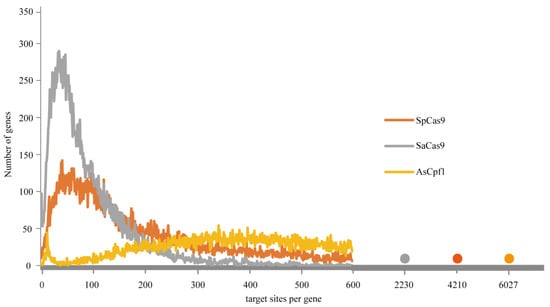 The number of CRISPR targeting sites corresponding to gene numbers.