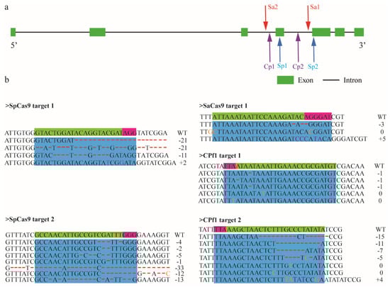 - Ran, F.A.; Cong, L.; Yan, W.X.; Scott, D.A.; Gootenberg, J.S.; Kriz, A.J.; Zetsche, B.; Shalem, O.; Wu, X.; Makarova, K.S. In vivo genome editing using Staphylococcus aureus Cas9. Nature 2015, 520, 186–191. [Google Scholar] [CrossRef]