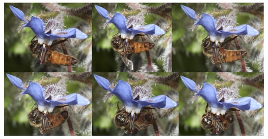 There is no doubt that we accidentally observed a queen bee sucking nectar on a borage flower. This most likely occurred during an orientation or mating flight, although we cannot exclude other possible disturbing factors. Certainly, the observed foraging behaviour needs to be confirmed by other observations and further investigated, e.g., by using advanced technology such as the most promising remote sensing methods [29]. This would improve the poor knowledge on the behaviour of newly emerged queen bees and would help us better understand their biology, apart from their already known fundamental role in honey bee colonies after mating.