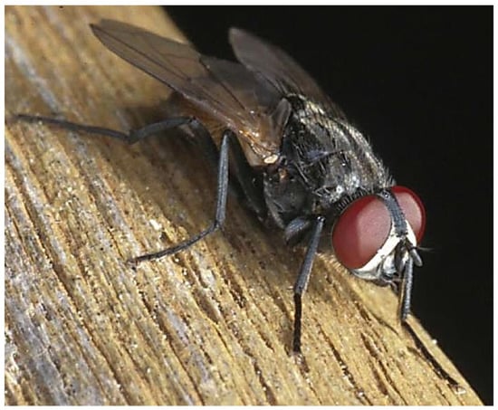 - West, L.S. The Housefly: Its Natural History, Medical Importance, and Control; Comstock Co.: Ithaca, NY, USA, 1951. [Google Scholar] [CrossRef]