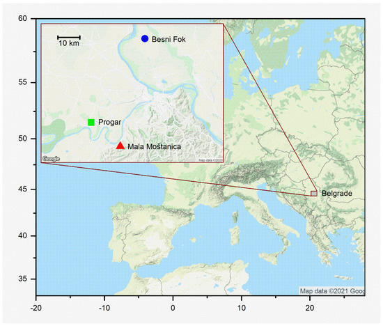 Location of the three Quercus robur forests studied, near Belgrade, Serbia.
