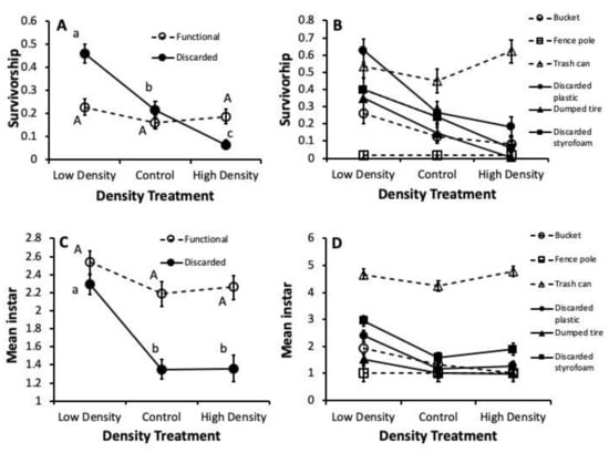 - Costanzo, K.S.; Kesavaraju, B.; Juliano, S.A. Condition specific competition in container mosquitoes: The role of non-competing life-history stages. Ecology 2005, 86, 3289–3295. [Google Scholar] [CrossRef]