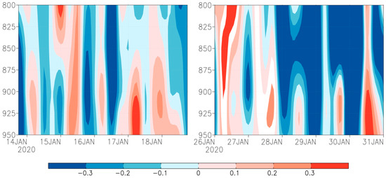 This study also identified that downward flow above 0.3 Pa s−1 was present in the periods 17–18 January and 30–31 January (Figure 4). However, the role of downdraft was insignificant, because the downdraft was not strong enough to overwhelm fall armyworm moth’s self-powered flight speed. Hence, downdraft was not the fundamental reason of the landing of the fall armyworm at Torres Strait islands and Bamaga, Australia.