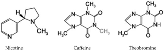 - Harvey, J.A.; van Dam, N.M.; Witjes, L.M.A.; Soler, R.; Gols, R. Effects of dietary nicotine on the development of an insect herbivore, its parasitoid and secondary hyperparasitoid over four trophic levels. Ecol. Èntomol. 2007, 32, 15–23. [Google Scholar] [CrossRef]