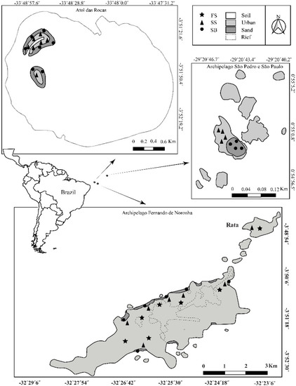 - Lima, E.C.A.; Zeppelini, D. First survey of Collembola (Hexapoda: Entognatha) fauna in soil of Archipelago Fernando de Noronha, Brazil. Flor. Entomol. 2015, 98, 368–369. [Google Scholar] [CrossRef]