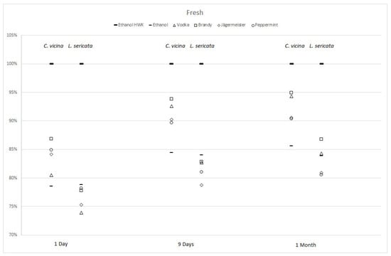 | Alcoholic Liquid | Calliphora vicina | Lucilia sericata | ||||||