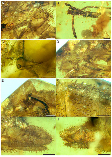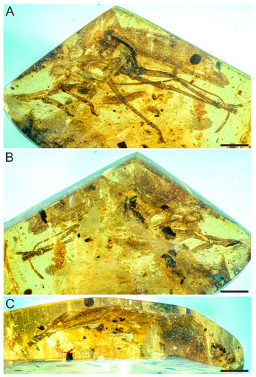 - Ross, A.J. Burmese (Myanmar) Amber Taxa, On-Line Supplement v.2020.1. p. 25. Available online: http://www.nms.ac.uk/explore/stories/natural-world/burmese-amber/ (accessed on 12 February 2021).