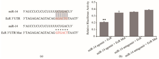 3.3. Confirmation of the Interaction of miR-14 with EcR Using a Luciferase Reporter Assay