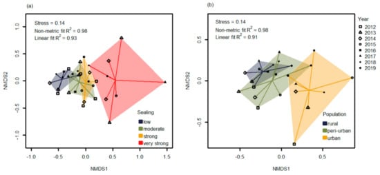 - Oksanen, J.; Blanchet, F.G.; Friendly, M.; Kindt, R.; Legendre, P.; McGlinn, D.; Minchin, P.R.; O’Hara, R.B.; Simspon, G.L.; Solymos, P.; et al. vegan: Community Ecology Package. R Package Version 2.5-4. 2019. Available online: https://CRAN.R-project.org/package=vegan (accessed on 8 February 2021).