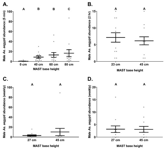 2.3. Experiment 1. MAST Base Height—Semi-Field Cage Trial