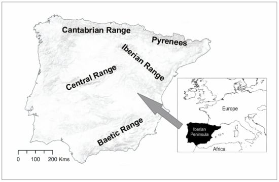 - AEMET. IMP Atlas Climático Ibérico. Temperatura del Aire y Precipitación (1971–2000); Agencia Estatal de Meteorología, Ministerio de Medio Ambiente y Medio Rural: Madrid, Spain, 2011; ISBN 9788478370795. (in Spanish) [Google Scholar]