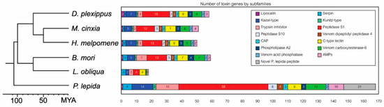 However, we note that several aspects limit the comparison and interpretation. First, only a few venomous lepidopteran species have been investigated. Secondly, previous research did not use a high-throughput sequencing technique, e.g., transcriptome and genome; thus, the diversity of toxin genes might not have entirely be revealed. For these two reasons, the assumption that particular toxin classes are unique to a specific lepidopteran species or lineage might be incorrect. Third, P. lepida toxins’ functions are predicted based solely on orthologous relationships with previously reported toxins or the predicted 3D structure with known toxins. Further functional tests are required to confirm the venom activity of the P. lepida candidate toxins.