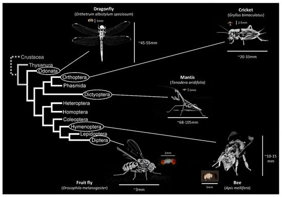 - Polilov, A.A.; Makarova, A.A. The scaling and allometry of organ size associated with miniaturization in insects: A case study for Coleoptera and Hymenoptera. Sci. Rep. 2017, 7, 43095. [Google Scholar] [CrossRef] [PubMed]