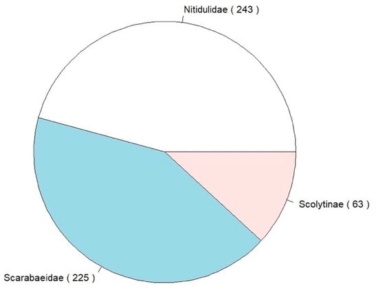 If we consider the number of exotic species recorded in the last few years, and especially those collected fortuitously, it is clear that current monitoring strategies are ineffective at detecting several beetle families. It is for this reason that great effort has been invested in improving monitoring strategies, survey methods, and traps [,], with a focus on the main entry points such as seaports and airports (i.e., [,]). However, much of these recent developments have targeted primarily families of forest insects, mostly wood borers, such as Curculionidae: Scolytinae and Platypodinae, Cerambycidae, and Buprestidae (e.g., [,,]). Furthermore, biosecurity surveillance suffers from two major issues, namely: (1) effective monitoring strategies, especially those that target multiple taxa, which are generally expensive because of the cost of traps and pheromones, and (2) difficulty in applying targeted monitoring strategies simultaneously and on a national scale.