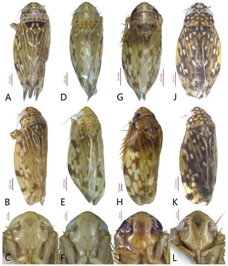- Matsumura, S. Die Jassinen und einige neue Acocephalinen Japans. J. Sapporo Agric. Coll. 1914, 5, 165–240. [Google Scholar]