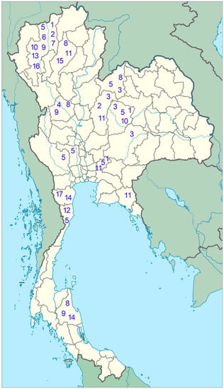 - Ashton, P.S. Thailand: Biodiversity center for the tropics of Indo-Burma. J. Sci. Soc. Thail. 1990, 16, 107–116. [Google Scholar] [CrossRef]