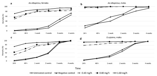 | Cx. pipiens | Females | Untreated vs. negative control 1 | - | - |