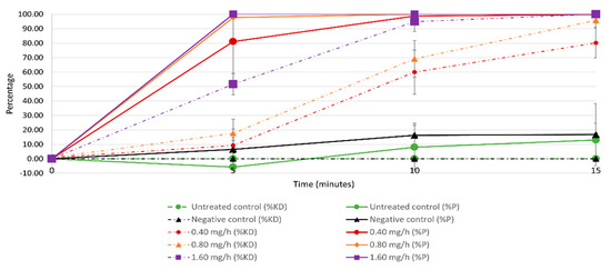 3.1.2. Percentage of Dead and Affected Mosquitoes 48 h into the Post-Treatment Period