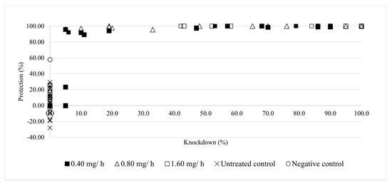 3.2. Effects of Sublethal Prallethrin Doses on Mosquito Biting Behaviour