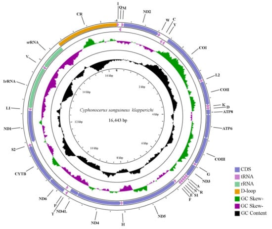 Nucleotide composition and skewness of mitogenomes of C. sanguineus klapperichi.