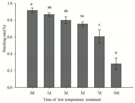 3.2. Effect of Low Temperature Duration on Egg Hatching